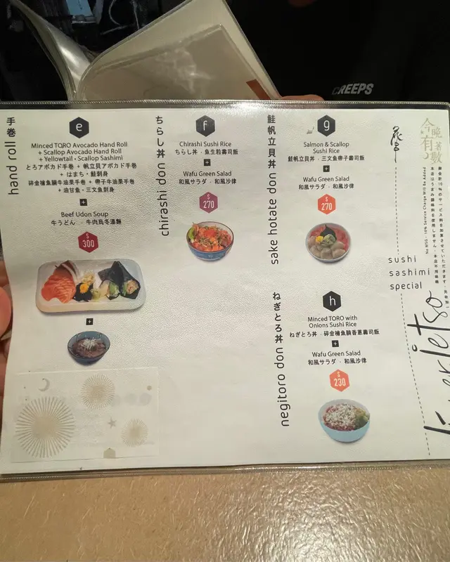 另外仲有串燒、湯烏冬、日式飯、散叫手卷刺身等