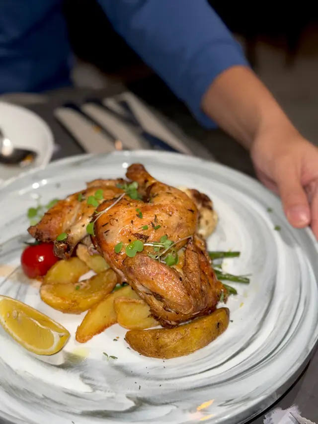 又係好有份量嘅一個主菜。檸檬嘅香氣滲入雞肉當中,食落清新不油膩。外皮好香口薄身,肉質保持住濕潤度。