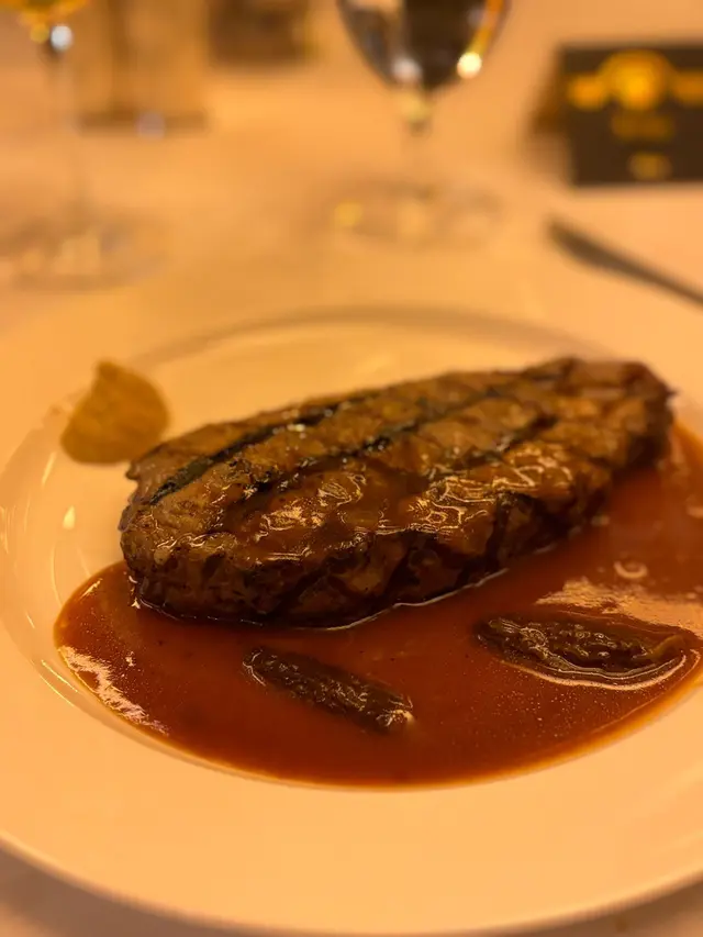 另一道主食,美國肉眼扒則是肉食愛好者的絕佳選擇。厚切的肉眼扒外焦裡嫩,肉質多汁,搭配特制的醬汁,完美呈現了肉的鮮美與豐富的口感,令人一試難忘。
