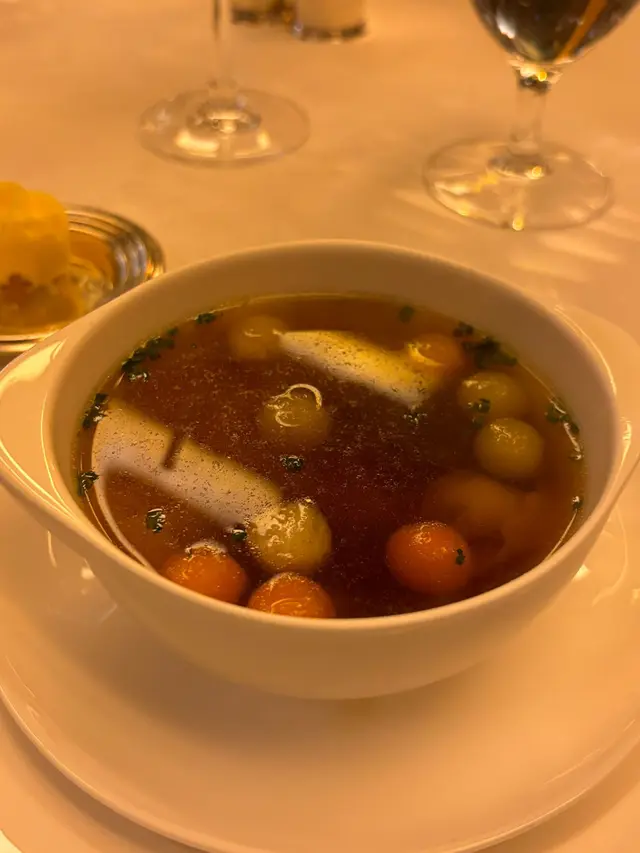 雞肉清湯溫潤而鮮美,湯底清澈見底,濃郁的雞肉香氣撲鼻而來。搭配的羊肚菌雲吞則是另一番風味,每一口都能感受到鮮美的餡料與湯汁的完美結合,溫暖而令人舒心。