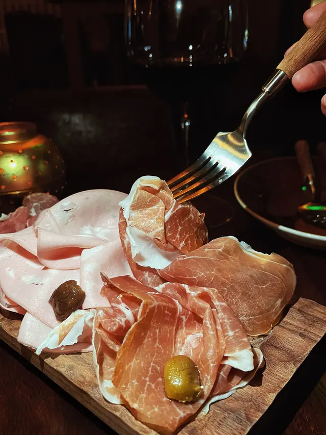 有Parma Ham、Coppa ham和Mortadella,配橄欖,很適合做下酒小菜