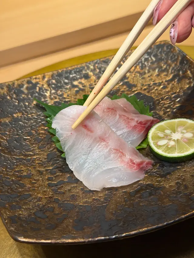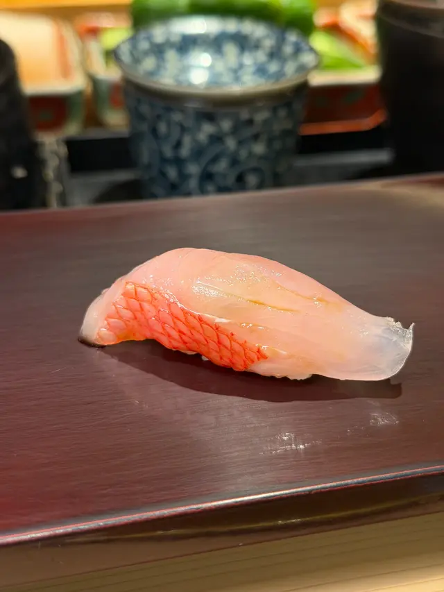 🍣 靜岡縣金目鯛:魚皮輕輕灼過,油脂香氣撲鼻,肉質細膩帶焦香