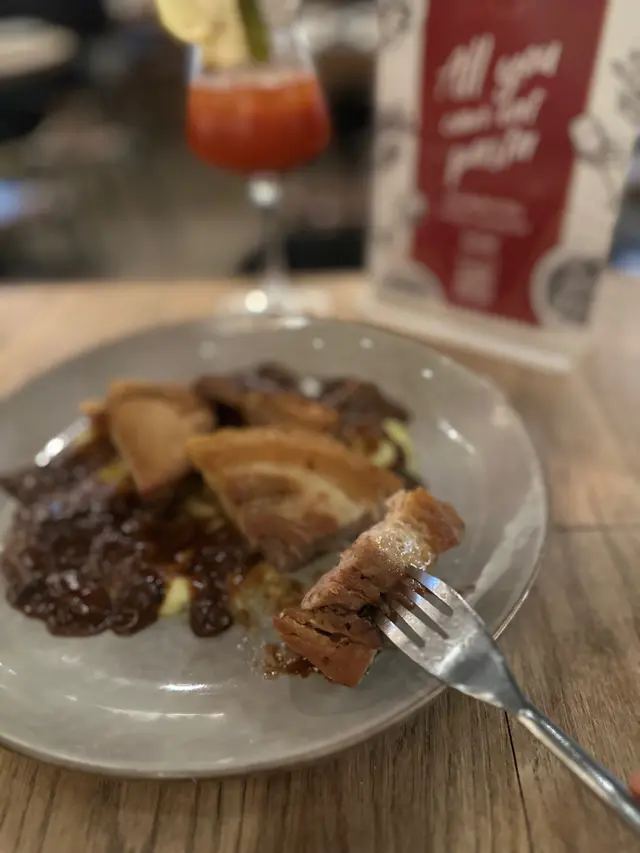 皮脆肉嫩,肥瘦各半,油脂感豐富。蘑菇汁調味得宜,薯蓉綿密。