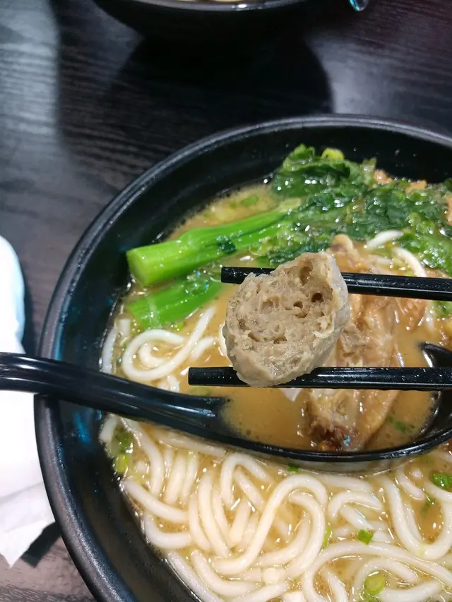 雞翼、牛丸配幼麵,也是$34,幼麵份量比起米線更多, 覺得好抵食,雖然朋友沒有加汁,但湯底本身已是奶白色的骨湯底,有鮮甜味道, 幼麵爽口,鹵水雞翼很入味而且大隻,牛丸有彈性,煮完吸收湯水會爆汁,不錯!