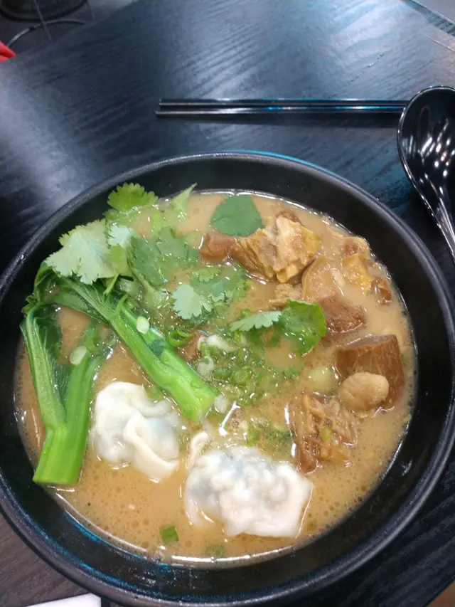 米線配牛腩、水餃,加秘製波仔汁, 雖然只是$34但份量不算少,先讚秘製波仔汁,加在湯裏很好味,有鹵水汁味道的香濃,配米線吃一流,米線有口感不會太淋,牛腩炆得超入味,份量也不少,好吃!水餃是韭菜餃,很香而且餡料多,有驚喜,值得一試!