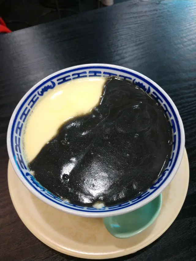 芝麻糊燉蛋$38, 將以燉好的燉蛋刮走一半,在空出的半碗倒上芝麻糊,就是這個鴛鴦色的甜品。要讚芝麻糊很香而不會太甜,吃到芝麻細碎的口感,燉蛋香滑,點彈得破,很不錯!