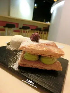 抹茶鮮吉士醬拿破崙配豆腐雪糕,拿破崙拼上抹茶吉士,