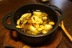 天氣凍咗,食啲熱焫焫嘢就最窩心,所以,試咗呢款蠔鍋,因為用咗油浸方式煮,啲蠔自然夠滋潤,但難得入口又唔覺好油;再者,啲蠔超大隻,非常肥美飽滿,蠔味十足,夠晒鮮美,而且份量唔少,仲加埋唔少蒜片去煮,又有唔少菇菌在內,好食又豐富。