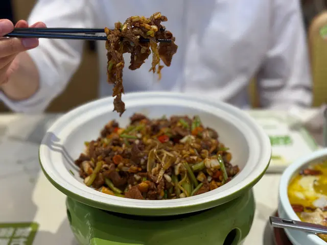 一頭牛得三斤刁鑽雪花部位,18秒猛火鎖住肉汁,辣得過癮仲好彈牙,撈飯食到舐舐脷!鑊氣勁!牛肉嫩滑帶嚼勁,配料香辣入味!