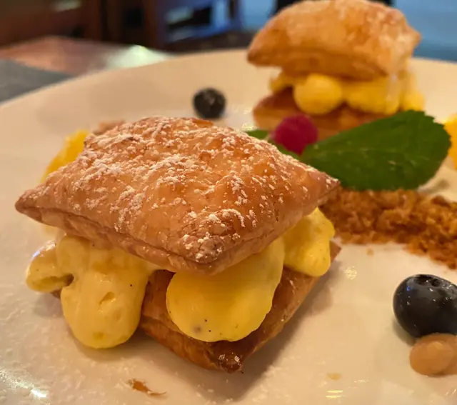 - **香橙木梨醬千層酥** 作為結尾甜點,記憶點不高,略顯普通。