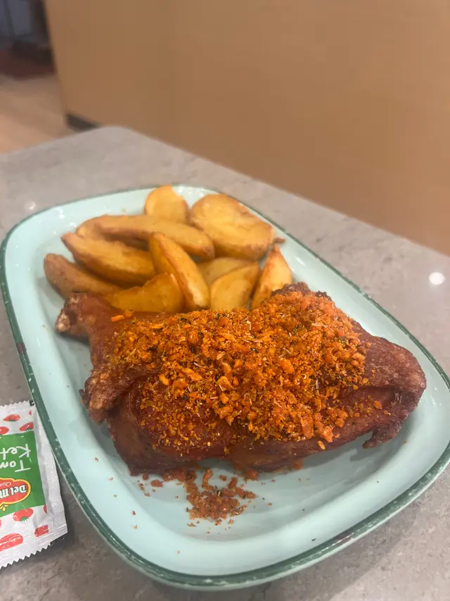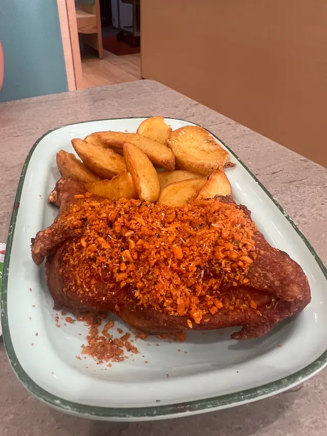 即叫即炸避風塘炸蒜雞髀加薯皇配紅豆冰,佢個炸髀新鮮熱辣辣咬落去好juicy,同埋配上啲炸蒜食好惹味,同埋呢個口味唔係道道都有得食,又整得好味,配埋紅豆冰真係好滿足呀。