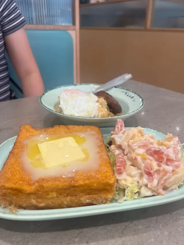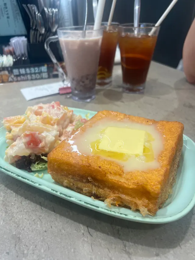 另外叫左個奶醬多士加什果沙律飲凍檸茶,佢個奶醬多啲醬夠曬多,每啖都食到奶醬味,好正。同埋加埋個沙律一齊食好清新。杯凍檸茶茶底沖得好好茶味夠濃之餘又唔會太苦澀,飲到檸檬既酸味。好飲到我要散叫多左一杯飲。