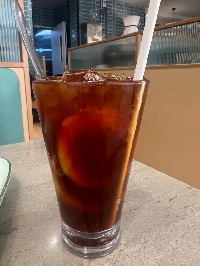 我仲後加左個雞翼煎雙蛋撈公仔麵,甜甜地既瑞士汁撈埋個公仔麵真係好夾,個雞翼都好入味,同埋個蛋香味都好濃。果然仲保持到以前水準。屋企人都同我一樣飲反杯凍檸茶。