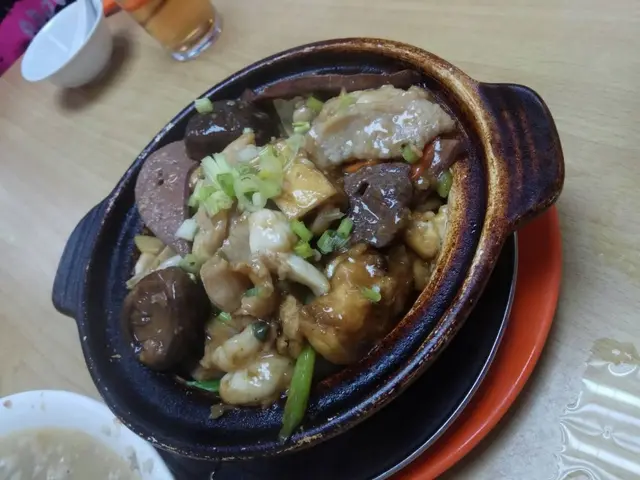 八珍豆腐煲,好耐都無食過呢個餸,以前嘅八珍豆腐煲內臟比較多,呢個就有豬潤,豆腐,豬頸肉,豬肉,蝦,冬菇,魷魚,底下邊仲有啲芥蘭菜,味道係唔錯嘅,豆腐足,油少d有更合口味。