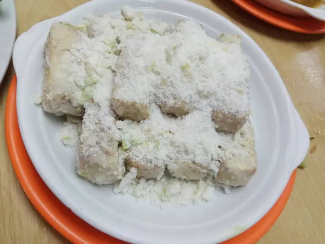 朋友想試下呢度嘅反沙芋,啲糖溶解後放芋頭落去不斷炒勻至熟透,廚師將反沙芋先起鑊,將淨返嘅糖粉加入蔥白,蔥段落去再炒,所以食落有啲蔥香味,認為太甜嘅話可以撥走啲糖粉再食。芋頭夠腍,夠粉,係甜咗少少嗻。