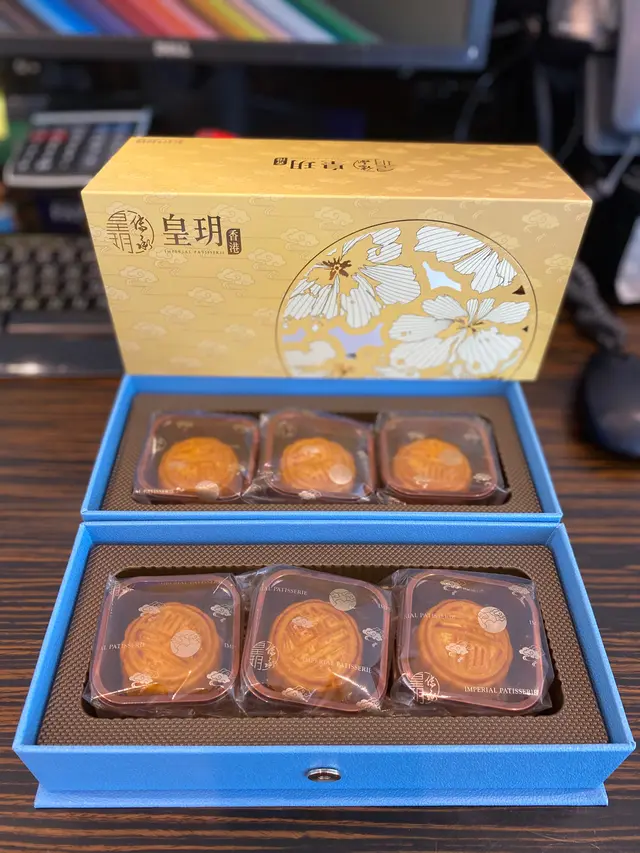 半島奶黃月餅始創人葉永華師傅,研發改良的迷你奶黃月餅 六件裝 HKD 328): 月餅色澤金黃,令人垂涎欲滴,香濃細滑奶香,叮一叮十秒,流心效果一流,100%香港🇭🇰製造,送禮自用佳宜💕