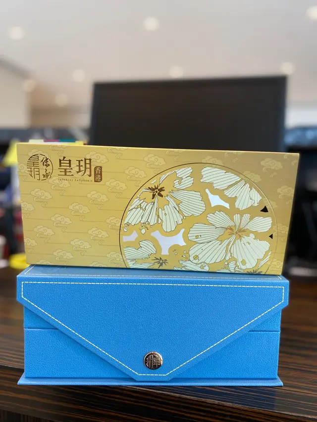 包裝精美盡顯大氣高貴品味,用上充滿質感的皮革紋理,禮盒邊緣有整齊車線點綴,非常高貴大氣設計😃仲可享用月餅後化身成首飾💍珠寶💎盒,二次重新又環保♻️。