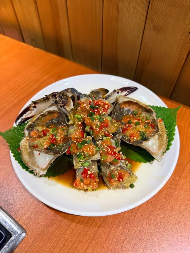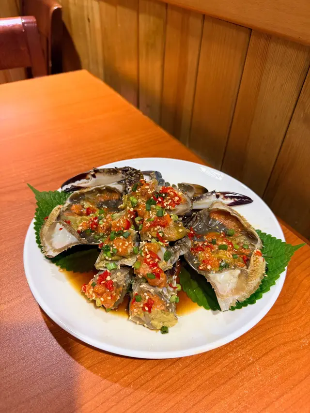 首先,呢個醬油螃蟹,蟹嘅肉質好鮮,特別係蟹鉗,撕開嚟一嚿嚿肉滑滑嘅,加上醬油嘅調味,味道入面好透,配埋紫菜飯,撈埋一齊食,正正好襯出蟹肉嘅鮮味。