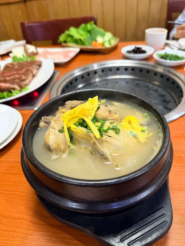 接住係調味牛大排牛肉烤得非常好,外面有一層香脆嘅焦皮,咬落去肉質柔嫩,完全冇筋。佢哋嘅調味搭配得好好,唔會太重口味,反而更加突出牛肉本身嘅鮮甜味。可以包著生菜一齊食,味道一流。