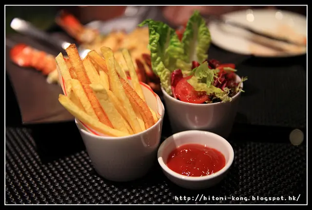 配搭薯條和Salad,如果是粗薯條就好囉,雖然它的幼薯條也好吃。