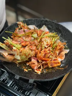 五花肉嘅口感肥瘦分明唔會太油膩🥩配上魷魚嘅口感同埋鹹鮮🦑店員係鍋上面辣炒味道入晒味🌶️ 配上生菜食比較清爽唔會太重口味好岩香港人味蕾呢🥬