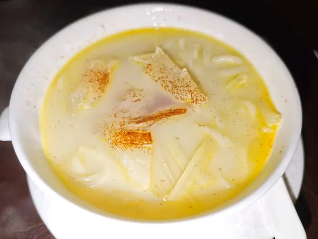 作為主食,我們享用了蝦子花膠濃雞湯拌菜苗手工拉麵。湯底濃郁,砂鍋特製的花膠更是增添了濃香,搭配新鮮的菜苗和手工拉麵,每一口都是美好的享受,讓人感受到用心烹調的實力。