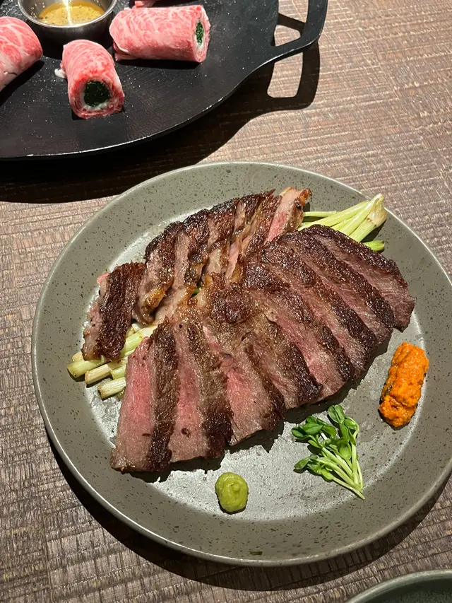 粉嫩粉嫩既韓牛🥩肉質軟嫩肉味濃🤤少少焦香既感覺🥰配上芥末或者特製包菜醬更加惹味🥰雖然係細size 但份量都頗多😚