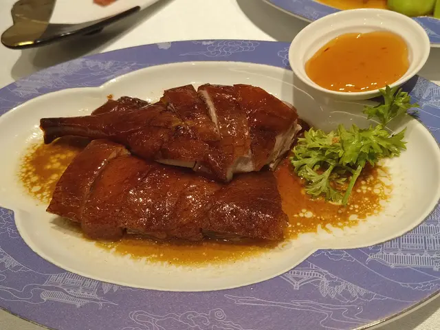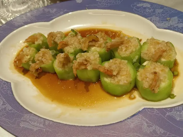 主菜香煎蓮藕餅即叫即煎,上枱仲滋滋作響~表面煎到金黃香脆,咬開見到真材實料嘅蓮藕粒,仲有少少肉碎同蝦米提鮮。外脆內爽口,藕粒嘅清甜同肉香完美結合,點少少喼汁已經好惹味!最重要係完全唔油膩,我連食三件都仲想encore~