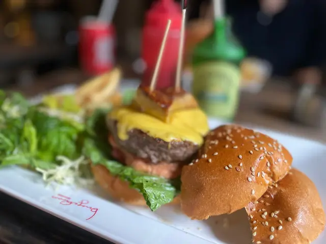 醬汁配料夾到絕! 通常個漢堡會配埋新鮮生菜、蕃茄、洋蔥同佢哋特調嘅醬汁(多數係類似燒烤醬或自家秘製醬)。呢啲配料唔係求其擺,係真係可以平衡返鵝肝同牛肉嘅油膩感,帶點清新同酸甜,令成個漢堡味道更加立體,食晒成個都唔會覺得膩滯。