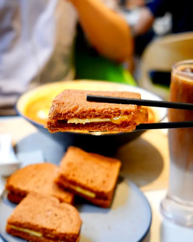 雖然唔係佢哋嘅招牌咖椰爆漿多士,但都用上啡色方包,味道甜甜地 (唔知係咪朱古力味?)