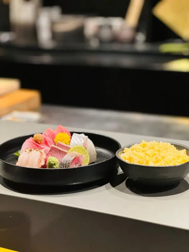 刺身定食一共有六款刺身,每款兩片,分別係深海池魚、鰤魚、伊佐目、鯖魚、中拖羅同埋赤蝦。鯖魚皮由師父輕炙,魚油香滿溢。值得一提嘅係,用柚子胡椒味噌配搭伊佐目刺身都好夾!