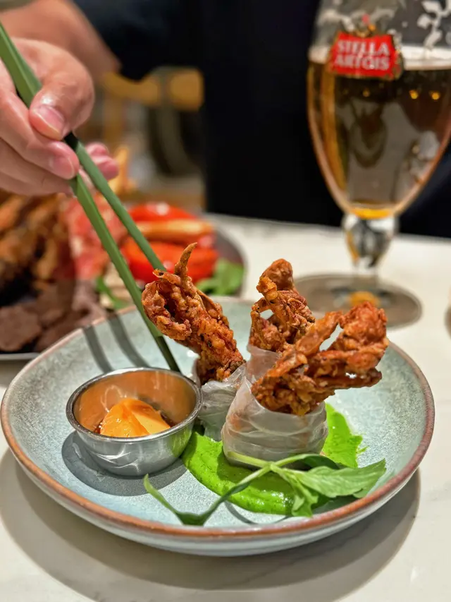 入面嘅主角軟殼蟹炸得啱啱好,蟹味香濃,唔會成口油。最驚喜係個醬,竟然係配牛油果醬🥑!估唔到泰式同西式fusion可以咁夾,牛油果嘅creamy同清新,正好中和咗炸嘢嘅油膩感,成件事即刻高級咗。