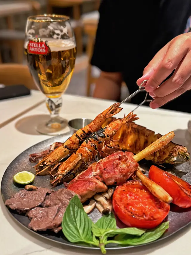 拼盤入面有啲咩?通常都離唔開燒牛肉肉、雞肉沙嗲串、燒大蝦、燒魷魚等。今晚食落,個牛肉燒得最出色,外層焦香帶甜,肉質爽口彈牙,肥瘦均勻,點埋個秘製醬汁,惹味到停唔到口。沙嗲串不過不失,肉質OK。至於海鮮,新鮮度係夠嘅,燒得啱啱好,保留到肉汁。