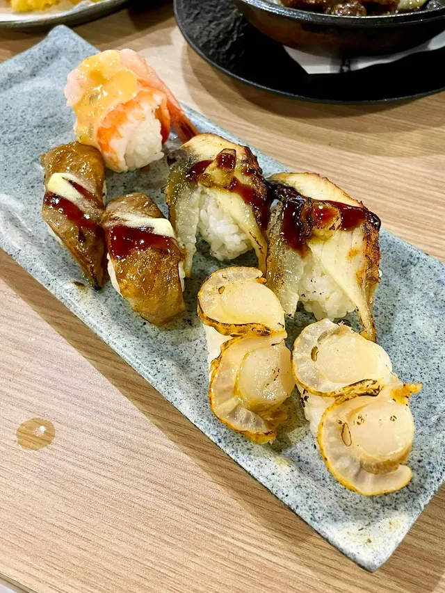 首先不得不提他們的刺身與壽司。希靈魚的爽口口感與甜蝦的軟滑甘甜讓人驚艷,生蠔更是鮮甜多汁,散發出海洋的天然美味。而壽司方面,明太子玉子燒的鹹香與甜美完美平衡,吞拿魚與海膽入口即化,絕對是每位壽司迷的心頭好。
