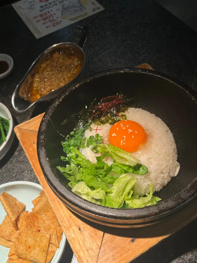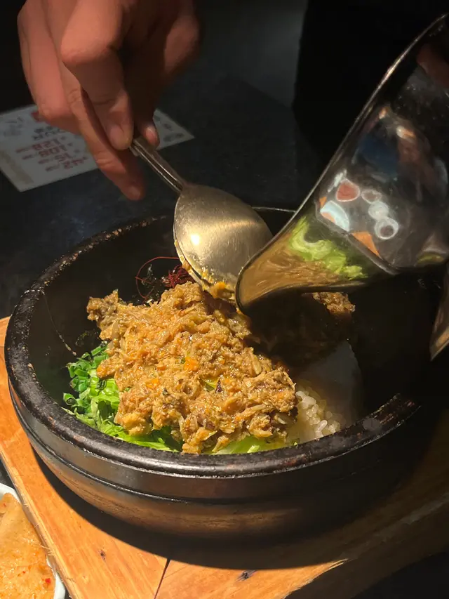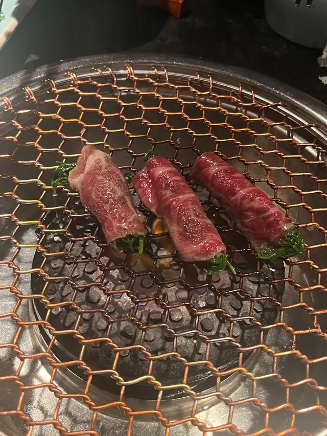 應該是韓國料理最近很流行的吃法🥹吃的好幾家韓料都有這種烤肉捲著沙葱的吃法,店員建議我們烤的時候要多加留意👌🏼不要烤得太熟。烤好的和牛包裹著沙葱,口感軟嫩多汁,而且完全不覺油膩👍🏻🥰風味十足。