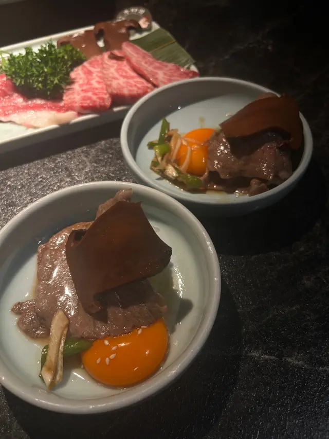這道菜一上桌就讓我們眼前一亮😍和牛切成薄片,輕輕炙燒過,包裹著濃郁的壽喜燒醬汁還有蛋液😚。$185 只有兩件,絕對是「一口黃金」的價格,但味道也確實對得起🐮和牛的油脂甘香、壽喜燒的甜醬油香口中爆發,層次非常豐富!
