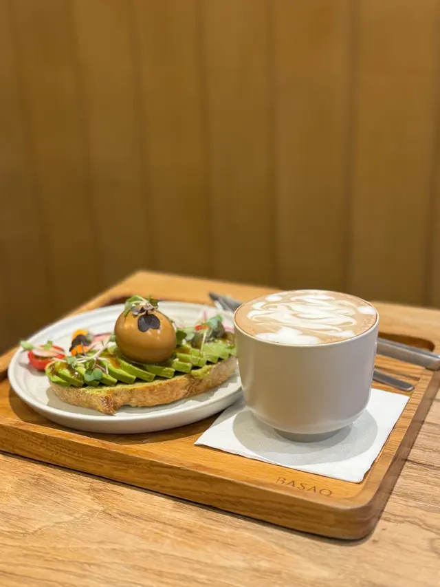 銅鑼灣鬧市中獲得片刻寧靜 nonstop-eating等級42024-01-01818 瀏覽 關注 Basao tea主打茶飲,各種清茶、奶類茶飲,仲有茶類甜點、鹹食。裝修採用日式禪系風格,主要用木色、杏色,加入少許植物,簡約、自然,令人喺銅鑼灣鬧市中都可以獲得片刻嘅寧靜。*牛油果酸種麵包吐司配煙燻茶葉溏心蛋 $113酸種麵包烘熱咗外層,中間保持到濕潤度。牛油果切片鋪面,帶少許黑點,淋上微酸油醋汁,配搭經典冇得輸。溏心蛋帶明顯嘅茶香、煙燻,可惜蛋黃稍稍過熟。牛油果酸種麵包吐司配煙燻茶葉溏心蛋$1131岩石牛奶 $47大紅袍茶葉用整espresso嘅方法整一shot濃縮茶液,再加入打咗奶泡嘅熱牛奶。茶味奶味各佔一半,平衡得好好,唔會澀,茶嘅回甘味比較少。岩石牛奶$47以上食評乃用戶個人意見 , 並不代表OpenRice之觀點。1分享銅鑼灣鬧市中獲得片刻寧靜 BASAO tea (白沙道) https://s.openrice.com/QrbT07OTF00檢舉 張貼 評分3味道5環境4服務4衛生4抵食推介美食岩石牛奶$47用餐日期2023-12-25用餐途徑堂食人均消費$160 (早餐)