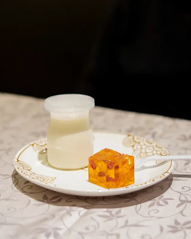 最尾更有甜品送,一個牛奶布甸同桂花糕,