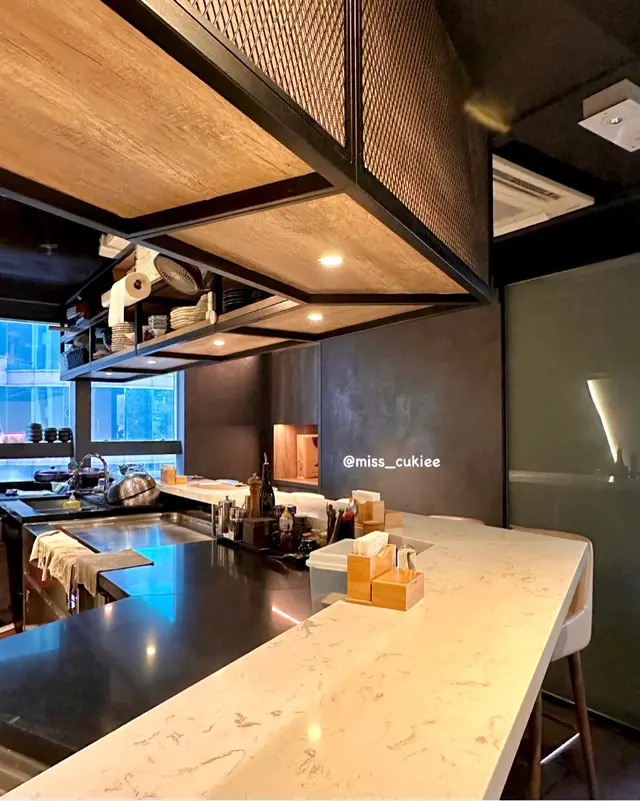 店內每個座位都係吧枱,圍住鐵板燒師傅坐,每4個客一個師傅,可以望住師傅即席燒嘢食,令我4感 — 睇、聽、聞和食都好滿足😌