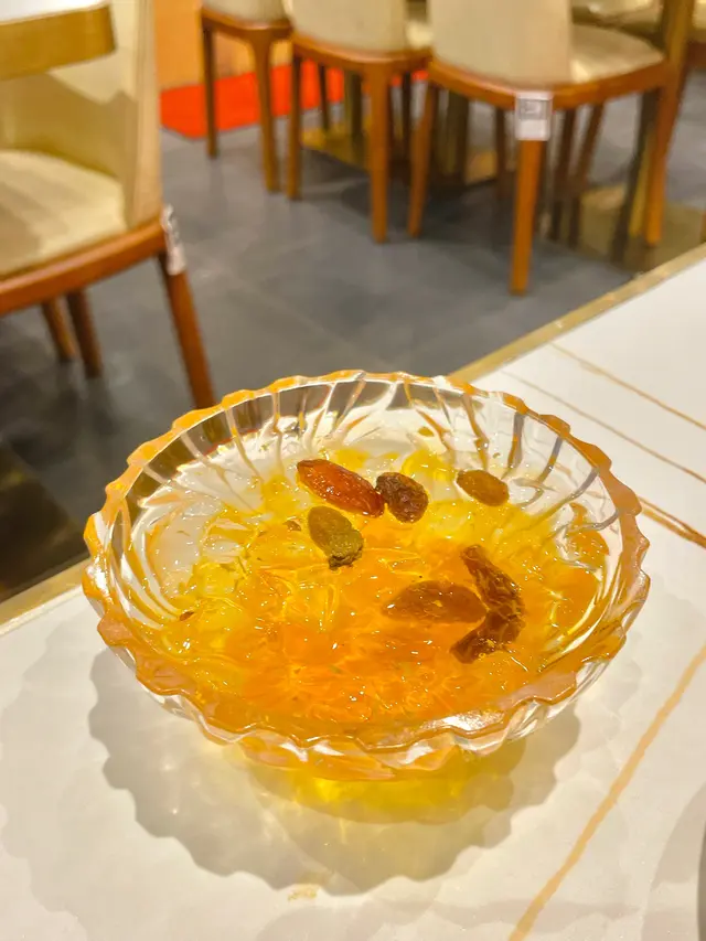 桂花冰粉(單點$28),表面鋪有葡萄乾,冰粉口感滑溜,配以桂花糖漿食用,味道清甜。