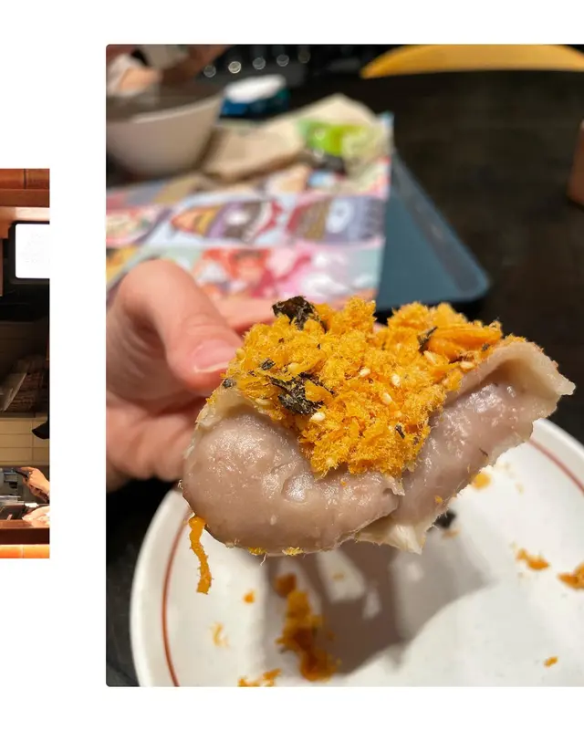 第一次食壓餅,好味到忍不住「哇」了一聲。爆出來的芋泥,非常綿密,甜度剛好,而且加入了肉鬆,平衡返味道和口感,所以可以一直吃吃吃都不覺腬。