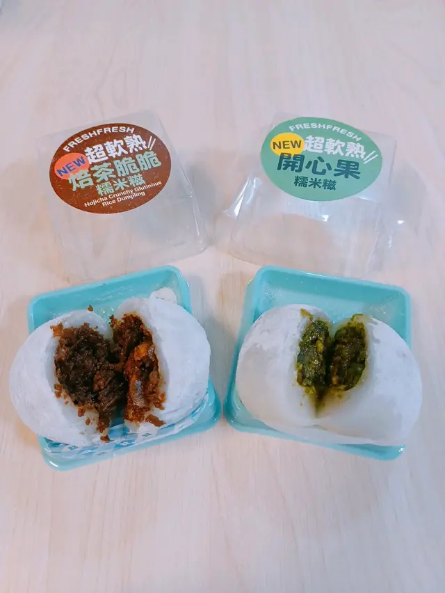 首先必推開心果麻糬QQ,$18 一盒有兩粒,麻糬好煙韌,咬落去開心果香味濃到不得了,仲有粒粒碎果仁,口感超豐富!杜拜開心果脆脆朱古力麻糬QQ都唔輸蝕,朱古力脆皮咬落卜卜脆,夾埋軟糯麻糬同開心果餡,層次感滿分!
