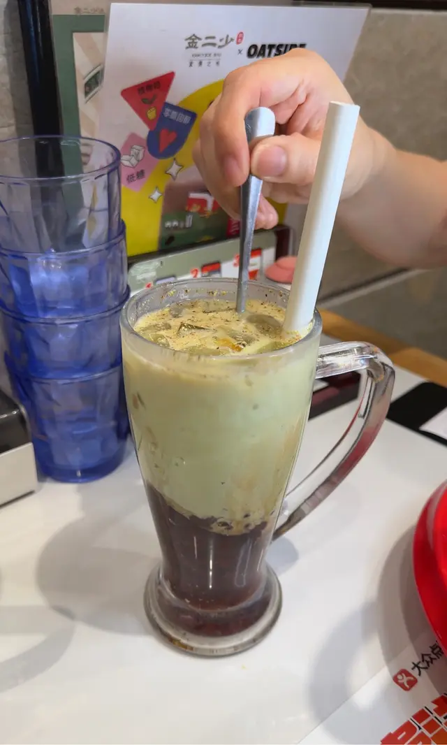 係經典港式紅豆冰的完美升級版!🤩紅豆粒差唔多有成半杯🤪開心果燕麥奶順滑口感,搭配港式奶茶濃郁茶香,再加上手熬紅豆既綿密 sweetness,層層疊加滋味🤤 手熬紅豆冰 × 二少招牌港式奶茶 × 燕麥奶按3:1:1黃金比例調配,層次感十足😍所以咁好飲😚