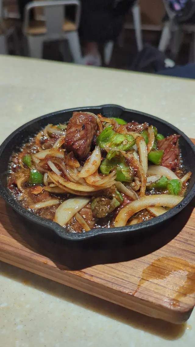 牛柳粒煎至外焦內嫩, 鐵板滋滋作響香氣撲鼻, 牛肉香味濃又唔會韌, 幾好食