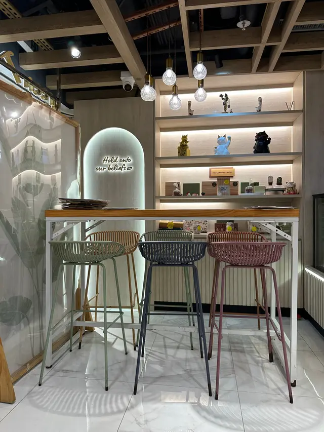 整間店的用色是光亮溫馨 有圓桌、卡位、高櫈