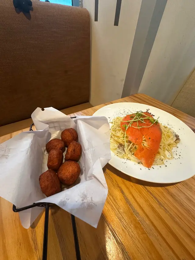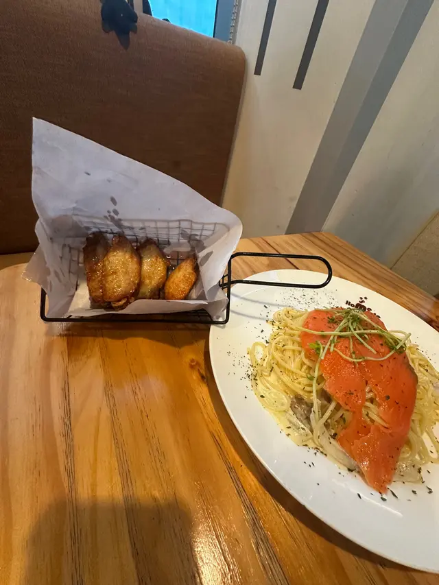 三文魚油脂香濃🐟,忌廉醬汁creamy得嚟唔膩🍶,意粉煮得al dente有咬口!加上點綴,清新平衡~必試!