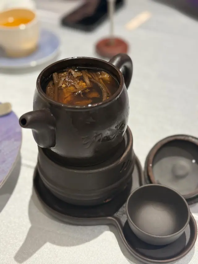 以紫砂小盅呈上的燉湯,揭蓋時蒸騰的香氣訴說著四小時以上的耐心守候。湯色清亮如茶,入口卻迸發驚人厚度,五指毛桃與豬軟骨的交融溫潤如玉,回甘綿長。沒有味精的虛假鮮味,只有食材本真在舌尖輕聲細語,彷彿每口都在為身體注入元氣。