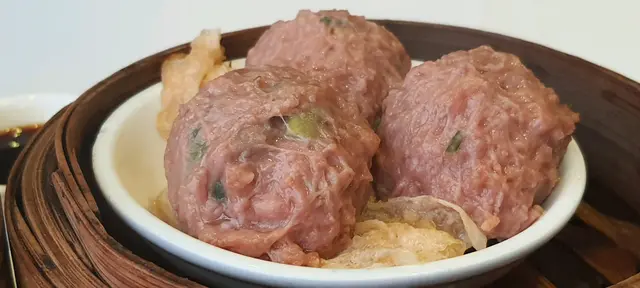 燒賣卻讓我感驚喜,咬下肉質濕潤鬆軟,吃得出是手剁肉才有此質感。絕對是加分作。