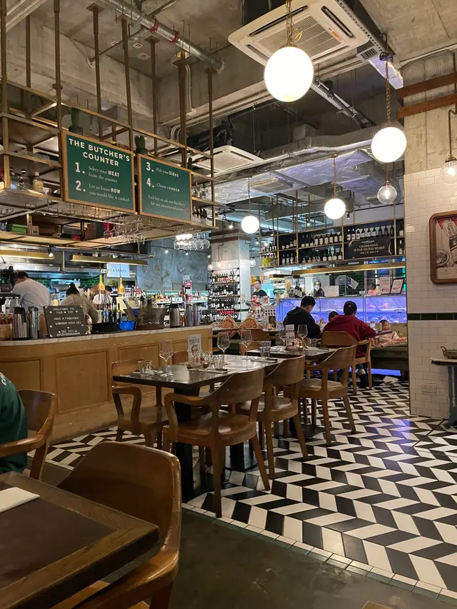 呢間餐廳好有特色,一邊廂係澳式超市,美酒食品貨品,還有有一個counter可以買到靚牛,dry aged/和牛等等,可以買走亦可以幫襯後係現場即時烹調。另一邊廂有餐桌用膳,逢星期二仲有T bone半價,今次錯過了下次一定要再嚟!