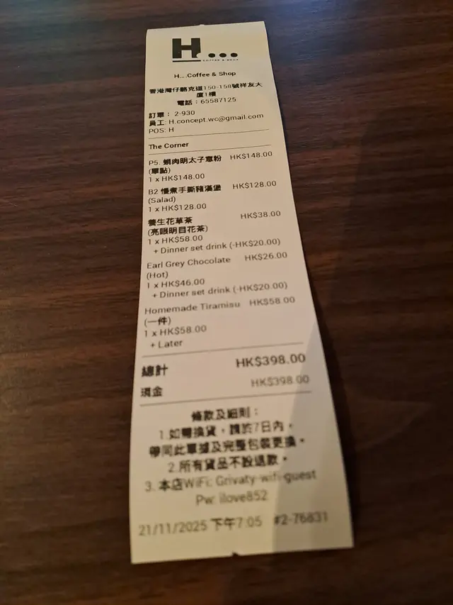 正餐加購咖啡或飲品 享餐牌上正價減$20優惠